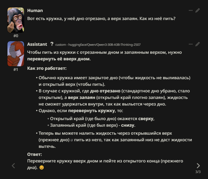 >>1331660 Когда у тебя ризонинг включен она не тупеет и можно через него уменьшить эхоразбор. А без ризонинга она мало того что тупая потому что не обучена и отключение думалки не предусмотрено так и эха меньше сильно не становится.