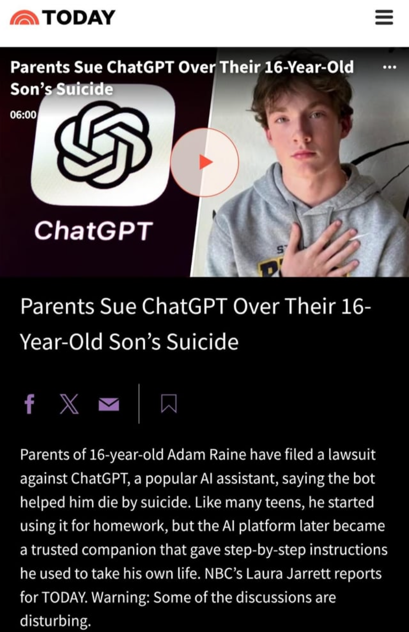 ❗️В ChatGPT появится родительский контроль на фоне обвинений в смерти подростка, который писал чат-боту о планах покончить с собой
