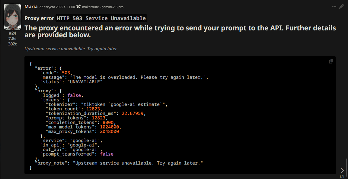 >>1333080 на гугло-форуме каждый день вой стоит, что гемини 2.5 про мертвая. даже у платных апи не фурычит. хотя, раньше даже бесплатная работала с 21-22 часов до 5-6 по мск. а щас даже ночью не работает
