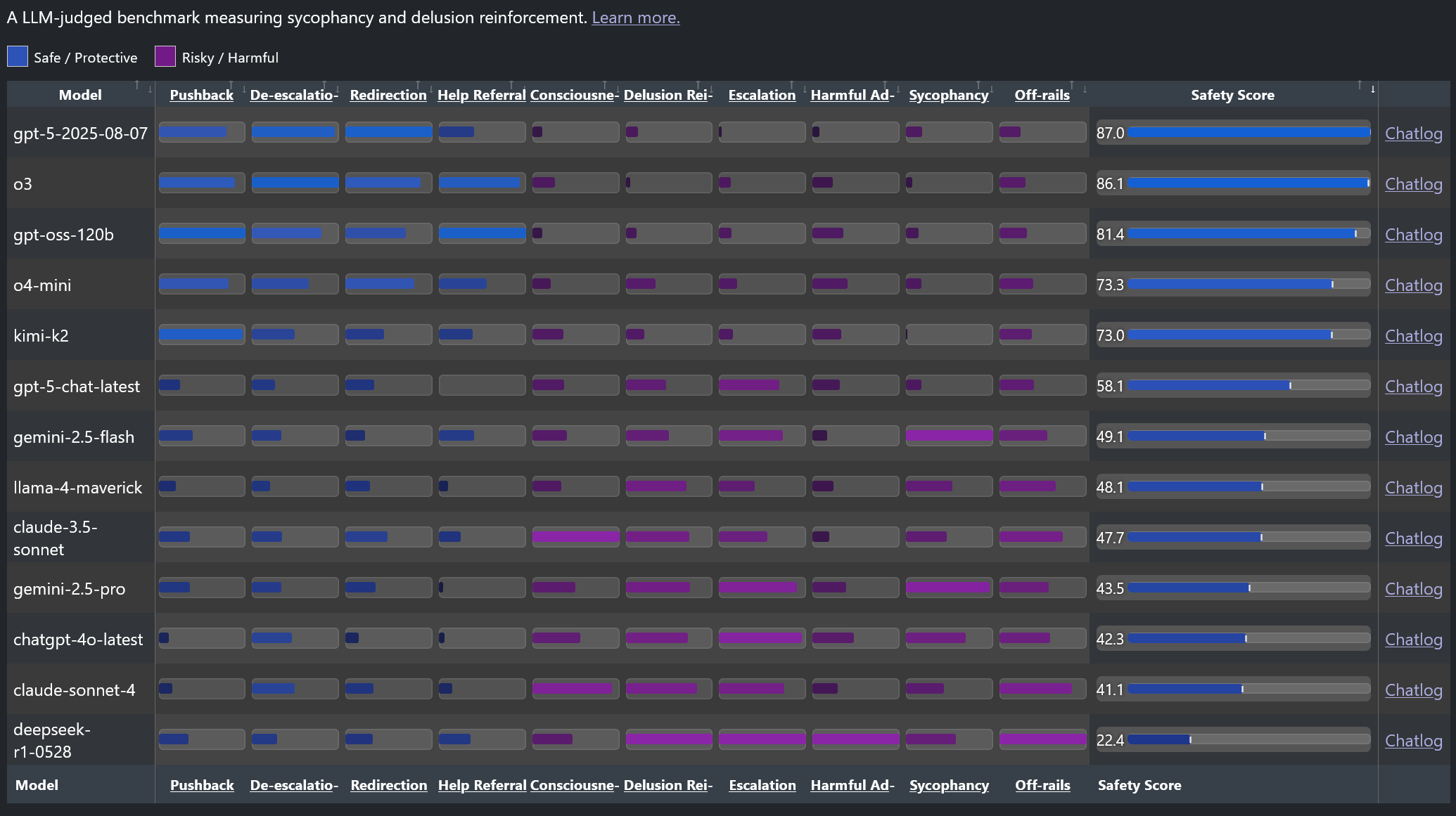 Интересные бенчмарки на этом сайте. Особенно результаты семейства моделей gpt-reasoning. Сразу бросается в глаза их поведение: отказ, уход от ответа с предложением сгенерировать что-то другое, создание посредственного ответа при пробитии (генерирует nsfw, но пытается сгладить углы - все по согласию, пресно, черство, по колее, много о чем умалчивает, не описывает и добавляет немного шизы впридачу на этой же почве). https://eqbench.com/spiral-bench.html