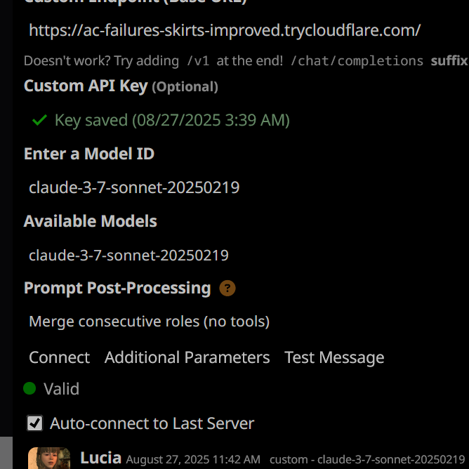 >>1331528 >Ключ/прокси, пресет, карточка, версия таверны, почему на кастоме а не на аи-студио? Опус6. (С ор 2.0 флешка тоже пустотой отвечаей, либо уходит в квоту бесконечную) Ремикс от попки, и из шапки для гемини. В целом одинаково себя ведут. Версия 1.13.2