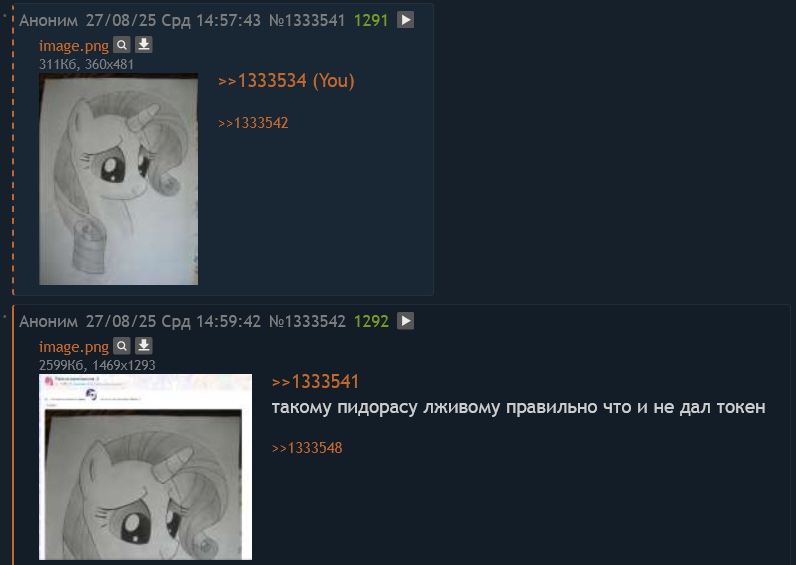 Забавно что форс того что это пони начался в треде, и сразу же прокси стала пони) А вообще я с кинул свои рисунки которые на заказ делал, а меня попросили логи с пони скинуть. Какой-то мем над людьми, анлак аноны.