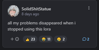 Анонче подскажите, стоит ли тренить лору на стиль на 1.1 или даже 2.0 люстре. До этого тренил на 0.1 люстре выходило нормуль, думаю будет ли пизже результат, но чет проебывать на говно результат часов 10 треньки не охота