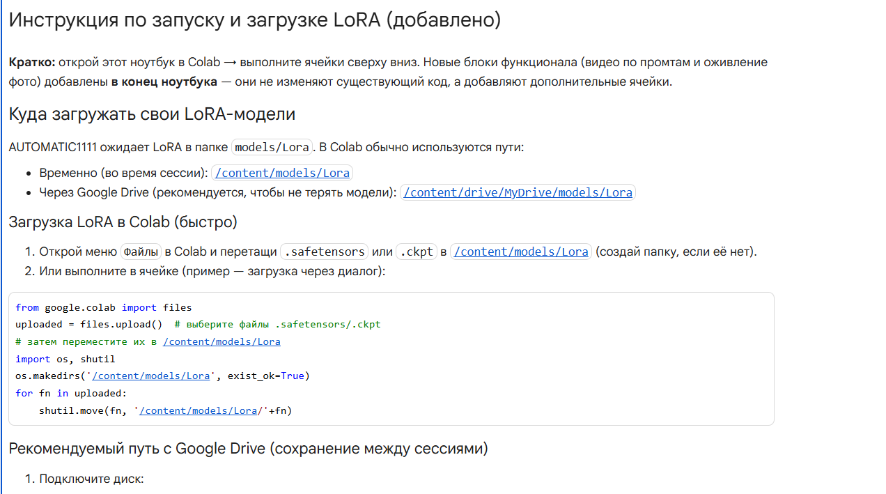 Устал писать код, искать рабочий. У меня есть код на работу с фото, но нет кода на работу с видео. Пробую Stable Diffusion, добавить вкладку работа с видео. Это всё онлайн на сервере. Сначала тестирую коды в гугл колаб. Далее пойду в другие сервисы или платно за копейки куплю вычислительную машину. Это если мой код будет работать. Stable Diffusion. Первый 37кб, просто работа с фото. Работает и запускается. А второй 47кб, добавленный функционал + инструкция. Сейчас проверю, будет ли работать второй без ошибок, как и первый. Появится ли новый функционал? Запуститься ли? Ваши ставки...