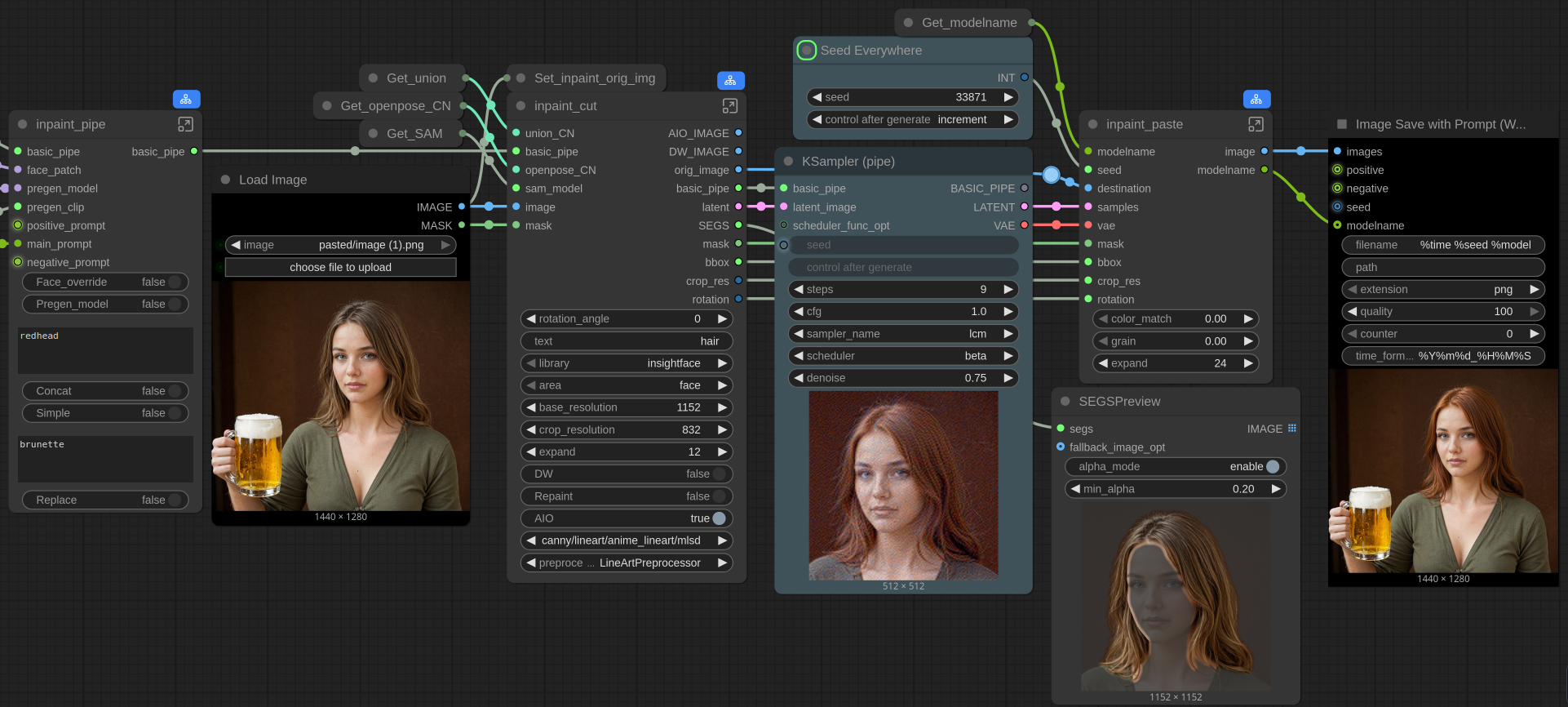 >>1353133 > импэинтинга Почти любая sdxl пойдет, если речь конкретно про комфилапшу, то тут на выбор следующие стулья, из тех что проверял и юзал. 1. differential diffusion + inpaint model conditioning/vae inpaint ноды. 2. brushnet, но эта собака любит краснить изображения 3. controlnet inpaint 4. fooocus patch ноды 5. тупо inpaint модель без вышеописаных выебонов, кроме может быть dd 6. какой-то безумный амдшник на процессоре делал через разбивание изображения на тайлы и последующее сшивание. Ко всему этому прихуяривается crop and stitch нода.