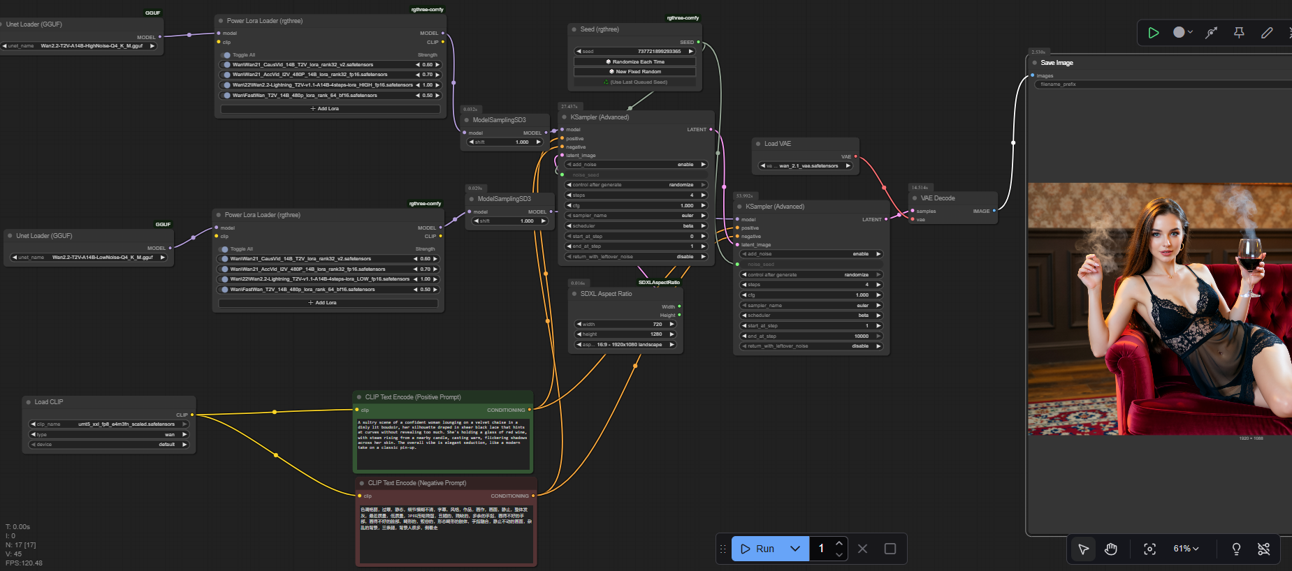 Но результат сам говорит за себя 1080p за 60 секунд (4 шага) это топчик. Может даже добиться 1024x1024 за 30-40 секунд. Но в Ване выбирать меньшее разрешение нет смысла, так как у него от изменения разрешения нативной генерации скорость не сильно падает. Правда на 1080p даже с этими лорами временами проебывается анатомия, приходится поднимать до 8 шагов, а это на 100% задержка во времени генерации.