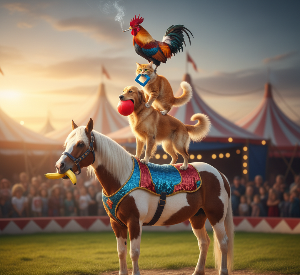 >>1356038 Сгенерь на sd 1.5 ил даже на SDXL, собаку, которая стоит на коне и дрежит красный шар во рту и кошку, которая держит синий квадрат во рту и стоит на собаке, а сверху кошки стоит петух который курит сигарету, а конь ест банан.