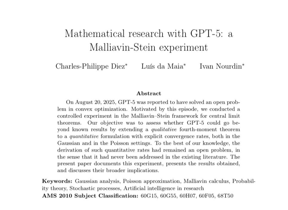 И все-таки внимание специалистов это привлекло. Сегодня вот вышла очень яркая статья, в которой три исследователя из Люксембурга решили проверить, на что GPT-5 способен в статистике. Это уже интереснее, чем посты инженеров OpenAI в твиттере, потому что тут исследование (а) независимо и (б) проводится непосредственно экспертами области.