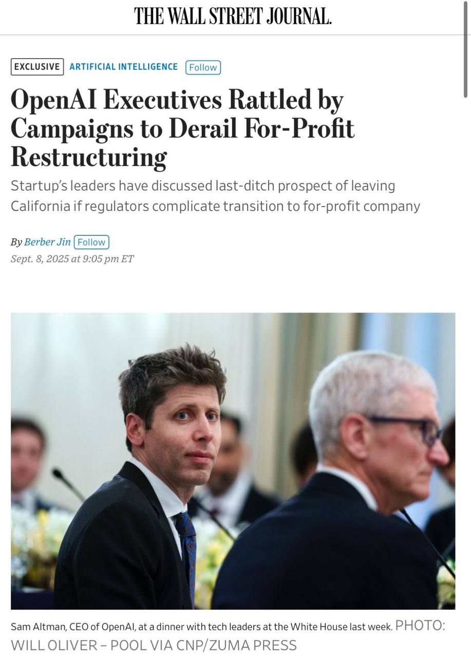 Для OpenAI это крайне опасный прецедент. Вся её финансовая модель завязана на переходе в for-profit. Инвесторы пообещали десятки миллиардов, но только при условии получения акций новой структуры. Без этого будущее IPO и дальнейшее финансирование окажутся под угрозой.