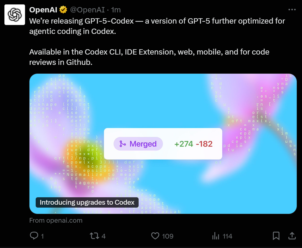 Все еще восхищаюсь тем, насколько хорош codex на данный момент Только что за полчаса без моего участия(онли промптинг) выполнил задачу, на которую когда-то с Gemini 2.5 pro уходило часов 5 времени и результат был в 100 раз хуже Прогресс.. Главное не накаркать