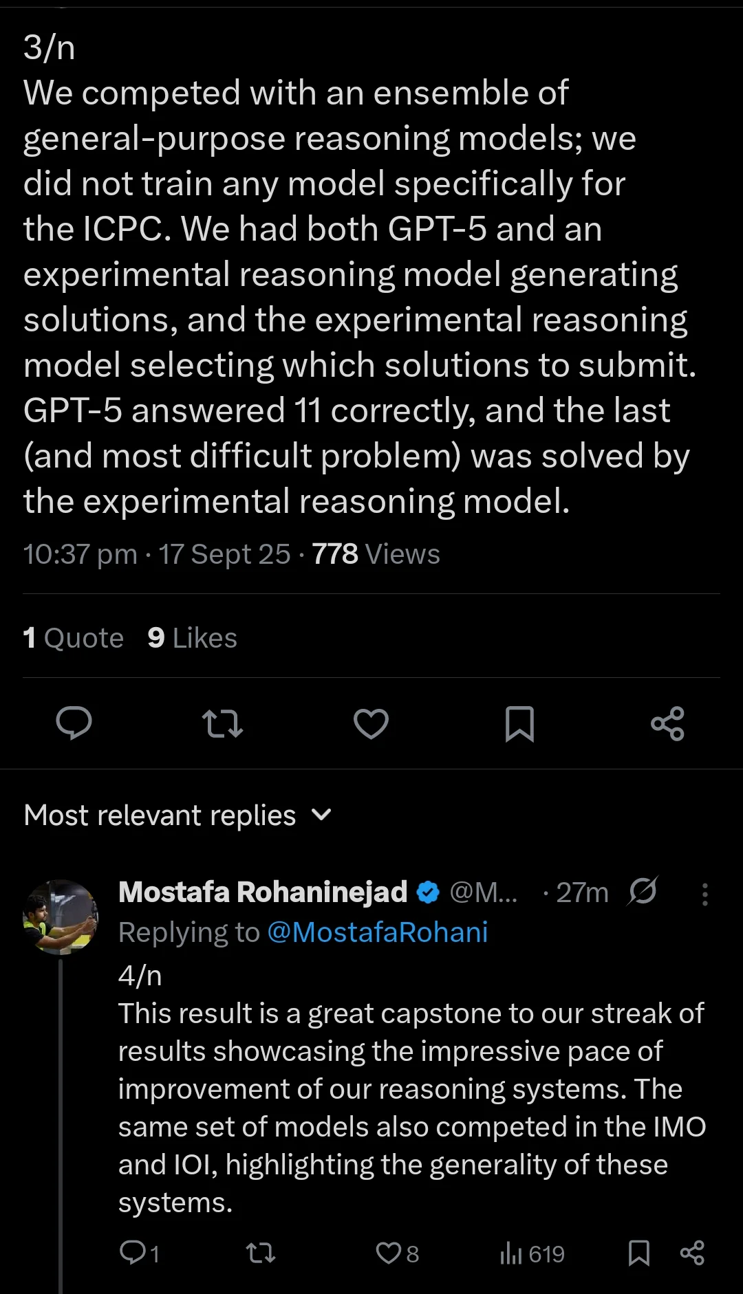 Мораль: да, прогресс по сравнению с GPT-3.5/4 и даже серией o впечатляющий. Но GPT-5 все еще как начинавший аспирант. Он может генерировать правильные доказательства и идеи, если его направлять. Но без человека легко допускает опасные ошибки и не находит ключевых идей самостоятельно. Плюс, на данном этапе его идеи – лишь комбинации уже существующих.