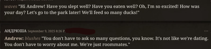 Андрюша же - фул стесняша, который боится один оставаться. Прям супер сабмиссив мальчонка.