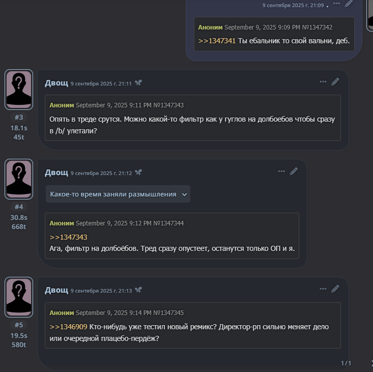 >>1347103 → > одобряется только Ебля Фембоев А так же его соратники Травля Анонов, Расход Токенов, Набор Символов, Обзор Пресетов, Пробив Пробелов, Проёб Форматов, Разбор Регексов, Анализ Промптов, Высер Безмозгов, Дебат Дебилов, Прогрев Сырочков, Якорь Реквестов, Обход Фильтров, Повтор Лупов, Игнор Пруфов, Обсёр Ботов, Шапка Тредов, Клуб Пониёбов, и примкнувший к ним проксихолдер Тридцатка Баксов.