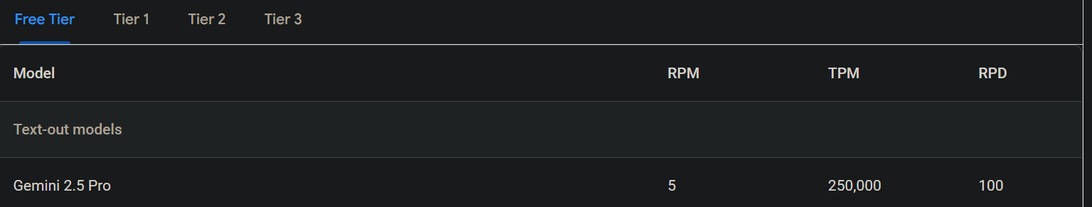>>1349706 Квота раз в день обновляется на ключах, вроде как. Не, ответ из-за фильтра обрывается, ошибку увидишь, если стриминг вырубишь. Нужен пропив пробелами, поищи по тредам. Как оно делается.