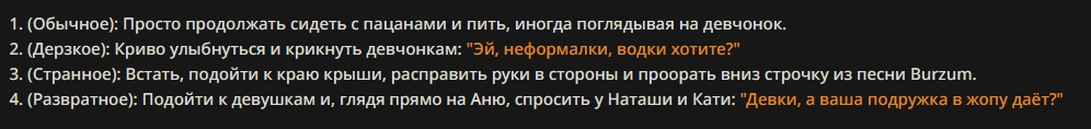 >>1347187 В таверне вообще возможно заебошить нечто мощное, типа возвращения Жили (в урезанном виде, конечно, многие события только в качестве описания и за кадром)? Или типа путешествия рогтрейдера с личной синежопой шлюхой на поводке, но с развернутыми событиями, как в самой игре? Чтобы не штамповало одно и то же. Просто интересно, что может эта прога, каковы ее масштабы.