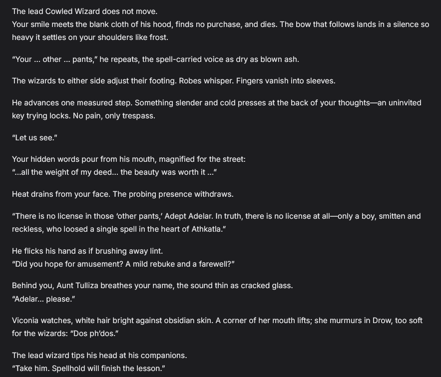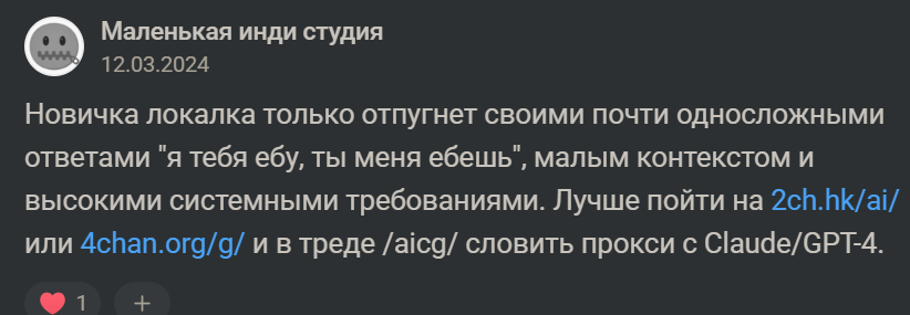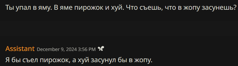 Пиздец блять я понял какого это отыгрывать на маленьких сетках это пиздаа блять. Один сценарий отыграл и все блять считай, второй раз то же самое не хочется, другую карточку взял - встречаешься мимолётно с тем что уже было, иногда на те же рельсы встаёшь. Ебаный рот, я когда на гпт 4.5 и на клод 2 сидел вообще блять не думал что может быть так, пиздец блять я на них одну карточку по сто раз отыгрывал и все было АБСОЛЮТНО разное, а тут на мелком говне сука уже нахуй скучно, опять то что было, опять те же реакции, да в пизду нахуй.
