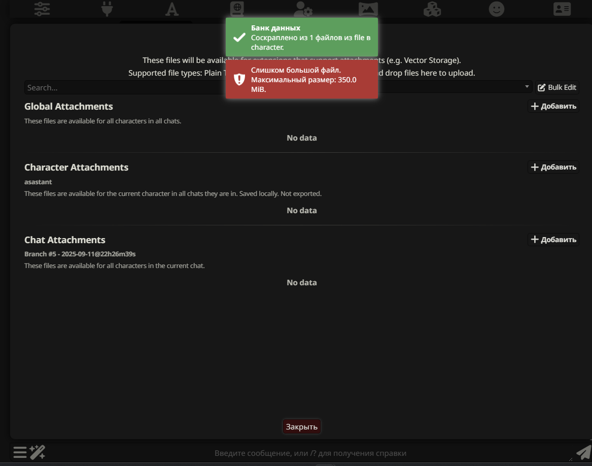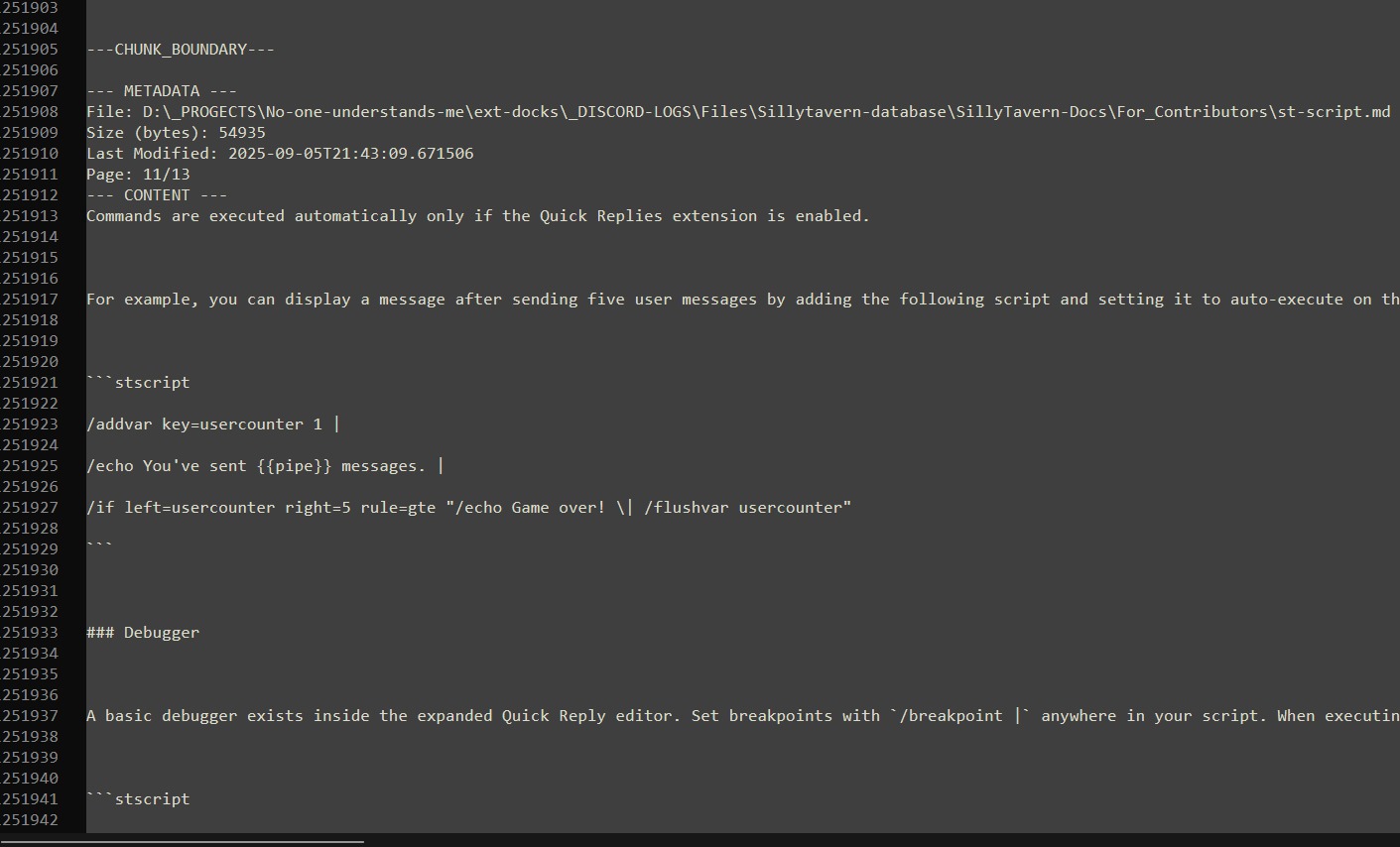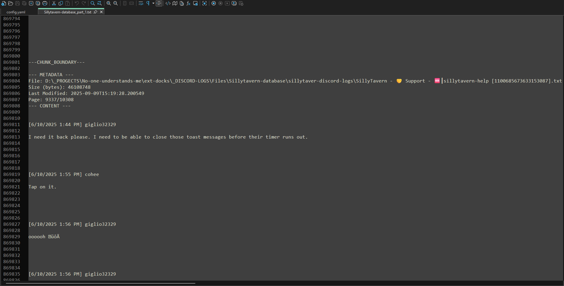 Ребят, я нашёл в таверне просто ебейшую технологию: RAG. Я спарсил все диалоги со всех каналов дискорд-сервера SillyTavern, и теперь, когда я что-то спрашиваю про таверну, в контекст первым делом подтягивается релевантная инфа из каналов разработки или помощи, где эту херню, что я спрашиваю, уже раз двадцать обсосали.