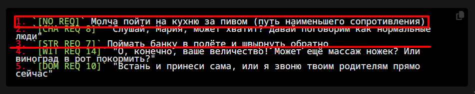 >>1361099 > Примечание: С даты вступления в силу настоящей директивы следующие условия должны соблюдаться безоговорочно. Любое нарушение будет считаться серьёзным и немедленно аннулируется. > — {{user}} настоящим выражает своё прямое согласие.