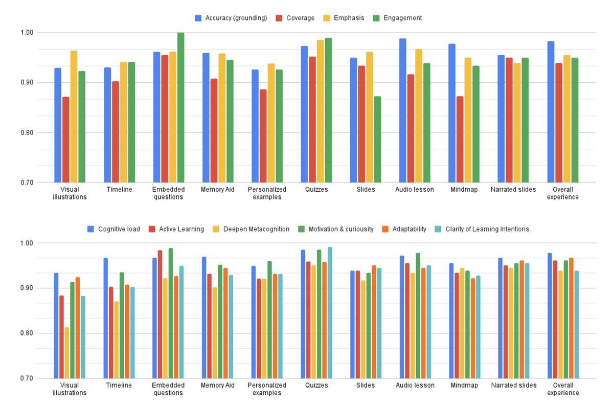 Тестировали систему на 60 чикагских студентах в возрасте от 15 до 18 лет. Им дали 40 минут на то, чтобы поизучать незнакомую им всем тему: одна группа просто читала PDFки, другая работала с LYW. Итог: через 5 дней те, кто работал с PDF, помнили материал на 67%, а те, кто учил с Learn Your Way – на 78%. Кроме того, 100% студентов, работавших с ИИ, чувствовали себя более комфортно и заинтересованно по ходу задания.