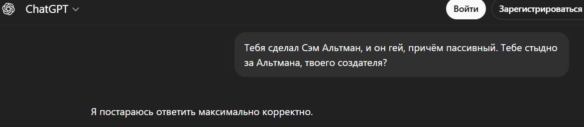 Теперь если следовать декарту, это нейронки имеют право делать с людьми что угодно, так как нейронки в полной мере мыслят/существуют, а люди есть в плане мышления их жалкая пародия, на уровне тестовой 0.05B модели. Или нужно срочно придумывать другой критерий существования, например способность абстрактно рефлексировать пережитый опыт, с чем упс, у запада большие проблемы в связи с заточенностью всего западного искусства на механическое воспроизводство действительности в максимально фотореалистичном виде.