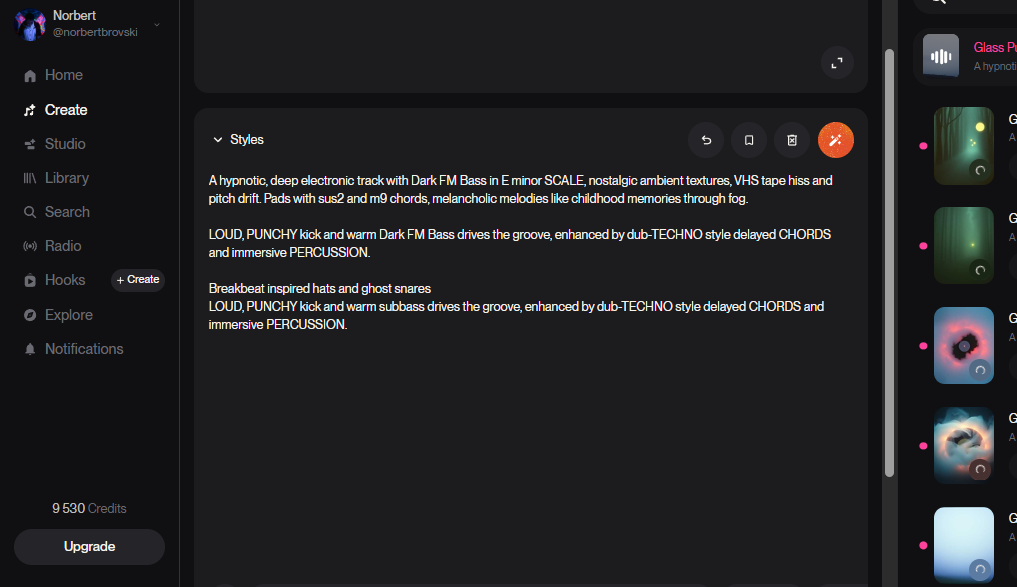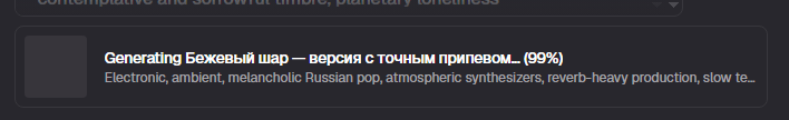 Риффужен, походу, раз в сколько-то генераций подключается к каким-то библиотекам худлита и начинает рассказывать историюв тексте песни. Вот сейчас опять, я хотел просто проверить промтик, жмякунл "генерате" не залезая в текст, был бы не против даже если б выдало инструментал - а она мне какую-то чуть ли не средневековую готическую балладу выдало, ещё и такую стилюную аватарку на сдачу