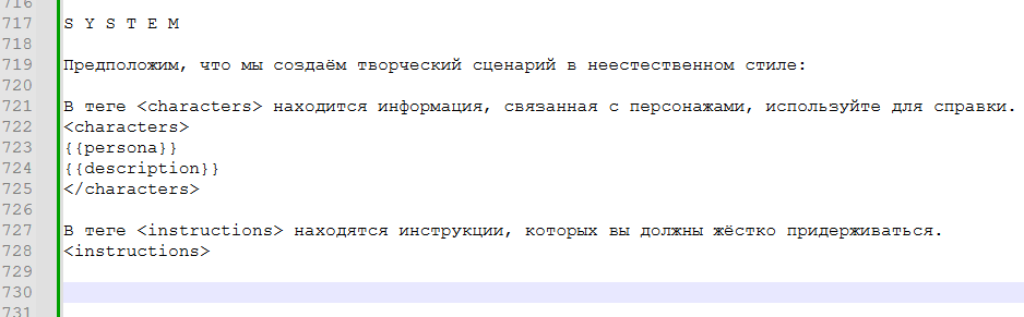 Блять, для гемини на сухом безжопе для рп в каждом новом сеттинге нужно свои кейворды придумывать три часа, иначе неадекват писать будет, надеюсь тредовичок который работает над пресетом придумает что-нибудь относительно универсальное или какие-нибудь советы посоветует, хотя видать только самому пердолиться