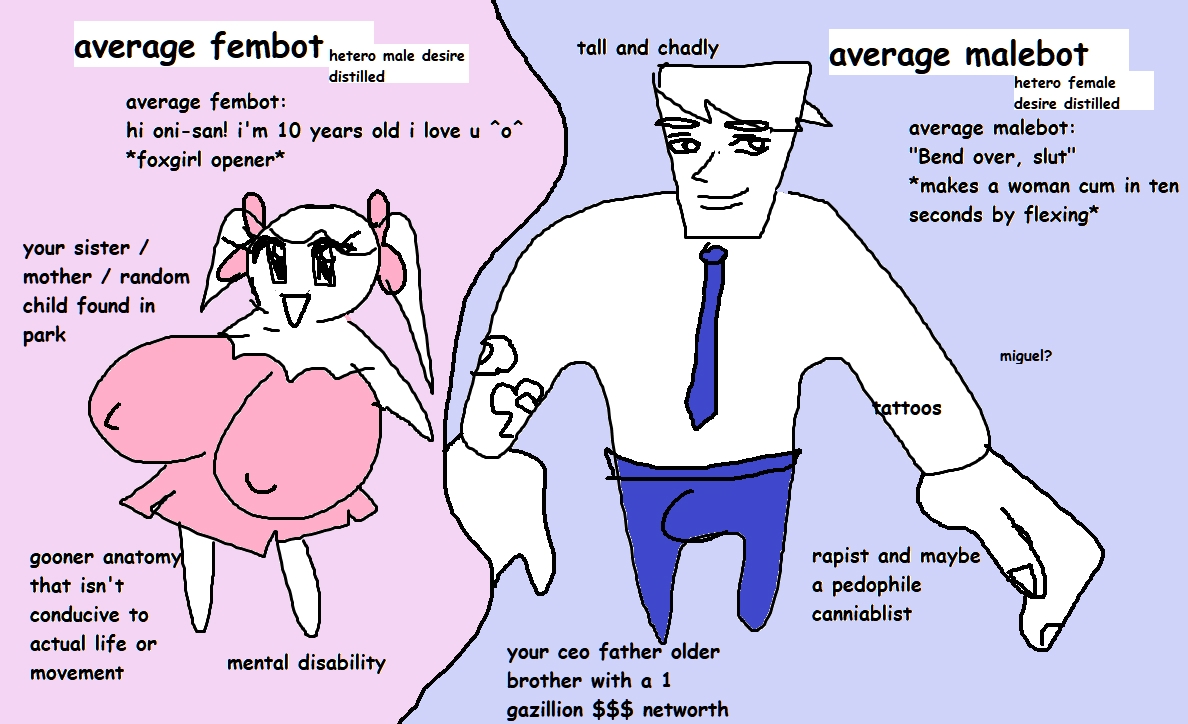 >>1374054 (OP) Я правильно понимаю, что даже от ботов мужчины хотят просто наивности и любви, а женщины - бабок, статуса и прочей биопроблемной параши? Просто пиздец.