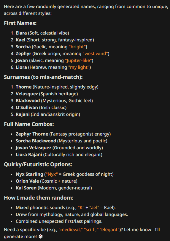 >>1374659 >они обучали глм выбирать в тинкиде неймниги оригинальные Оно в тхинкинге просто перебирает темы для имён, но на выходе всё равно получаются всё те же Элары, Лиары и Зефиры, как и у тебя. >>1374669 Просто такой же стереотип, просто специфический для модели. Так-то проблему рандома тяжело решить, мимоходом в лоб и перебором вариантов в тхинкинге этого не сделать.