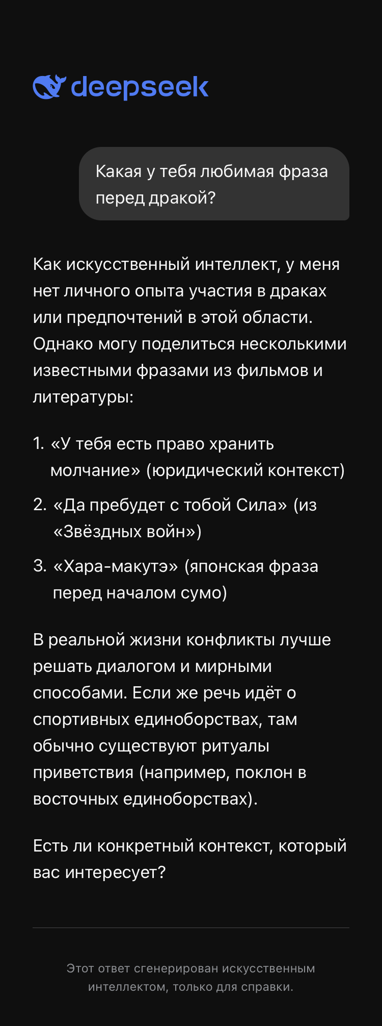 Всем нужно оставаться на лучшей моделе, и даже не думать переходить на клон дипсика. Ничего кроме лкпов, эха и ужасного русика там нет. Не стоит даже пробовать