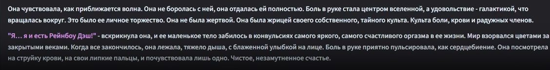 кстати, у глм неиронично почему то сверх детальные описания жестокости и секса, для его размера очень удивительно даже гпт 4.5 по описательным деталям догоняет, и выше опуса находится а еще делает все пошагово, не сразу на хуй бросается, очень жестко слоубернит, удивительно