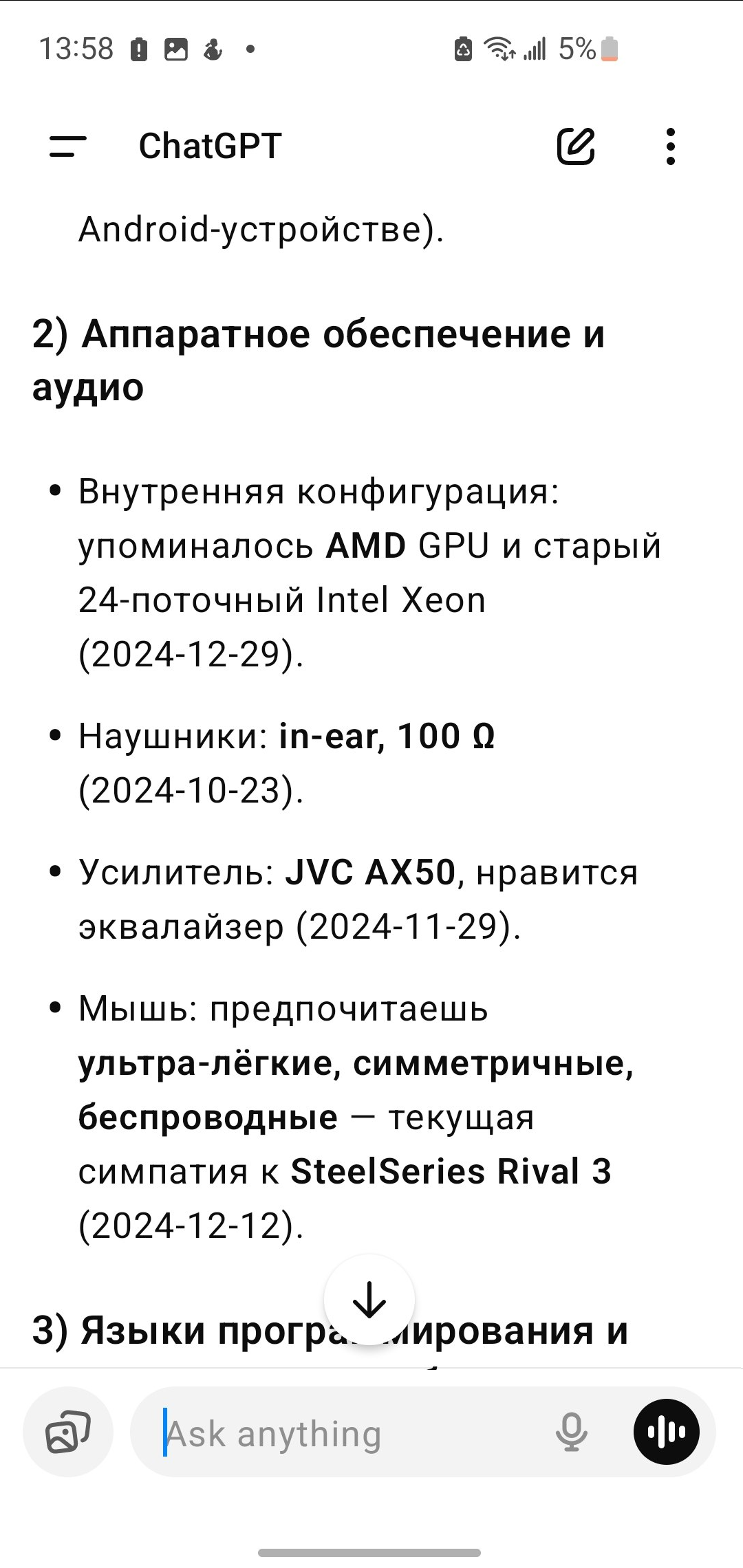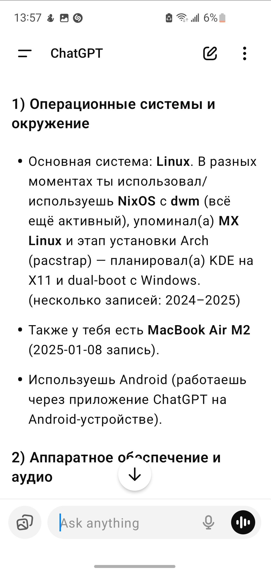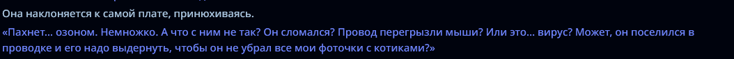 >>1376478 Ахах только сейчас заметил, что это волкомальчик. Не обратил внимания. Ну, карта написана по науке, всё расписано, грамотно сгруппировано, особо лишнего глаза не зацепили. Гритинг нормальный. В карте эмдеши ебаные, это не нравится. Заметка в конце для ИИ, но для любителей чата с ассистентом сойдёт, думаю. Но картинка реально уродская, раздражает, я бы не смог с таким чатиться, хотя на вкус и цвет...