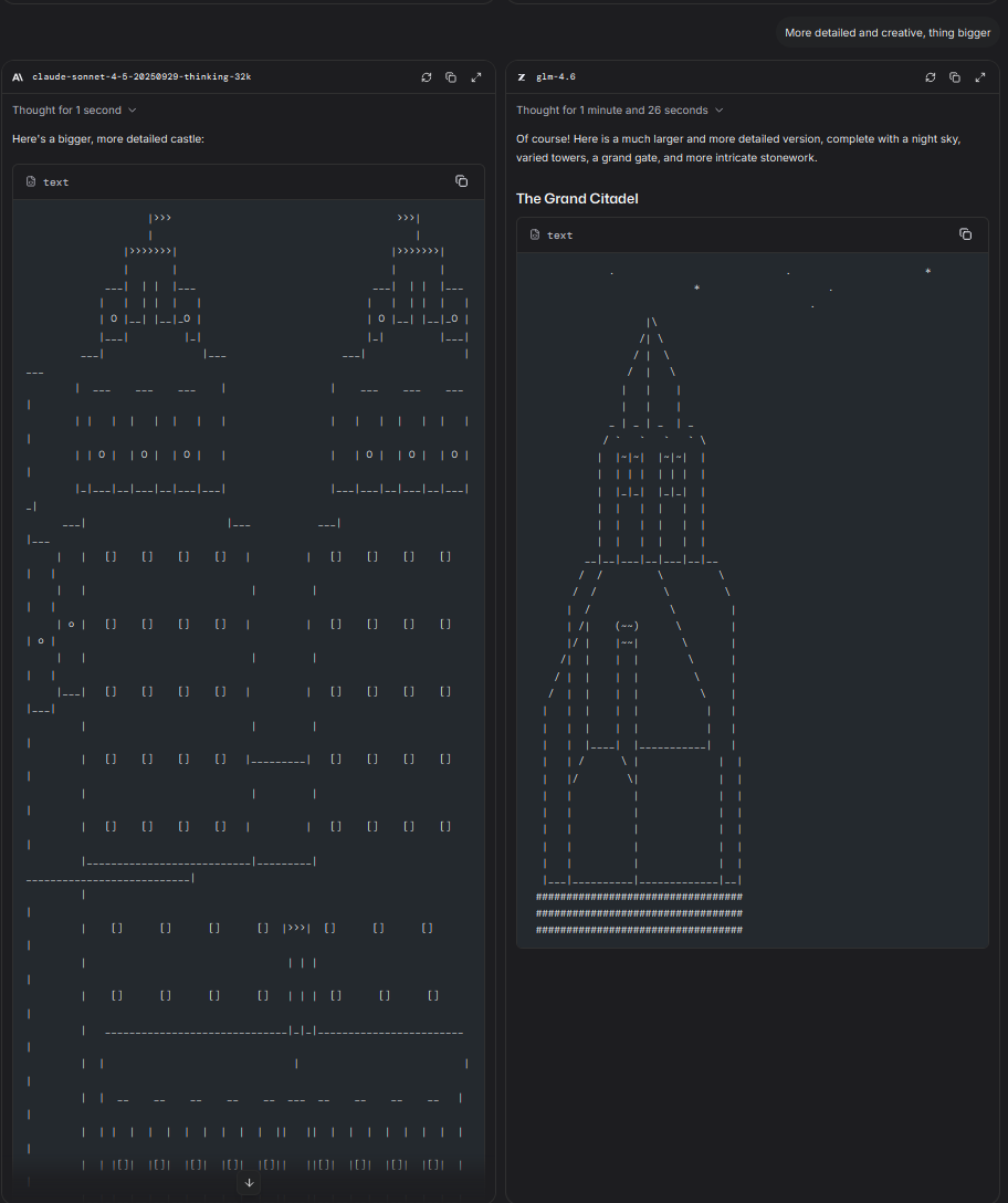 >>1377378 охуенная сетка желаю глм и z.ai всего лучшего в будущем, видно что они намеренно обучали её на рп и сторителлинг, и видно что они исправляли кучу проблем связанным с рп, по типу лупов, закруглений, позиционированию и т.д.