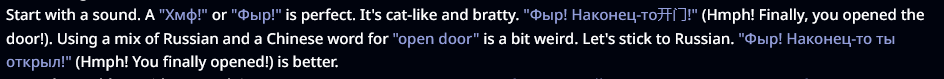 Куммод классный теперь в безжопе, мне нравится, префиксы так и искажаются изредко, видимо и правда ничего не сделаешь с этим. Всё равно даже с проебом префиксов это единственный способ норм рпшить на гемини (лично для меня) можно ручками фиксить такое, не страшно