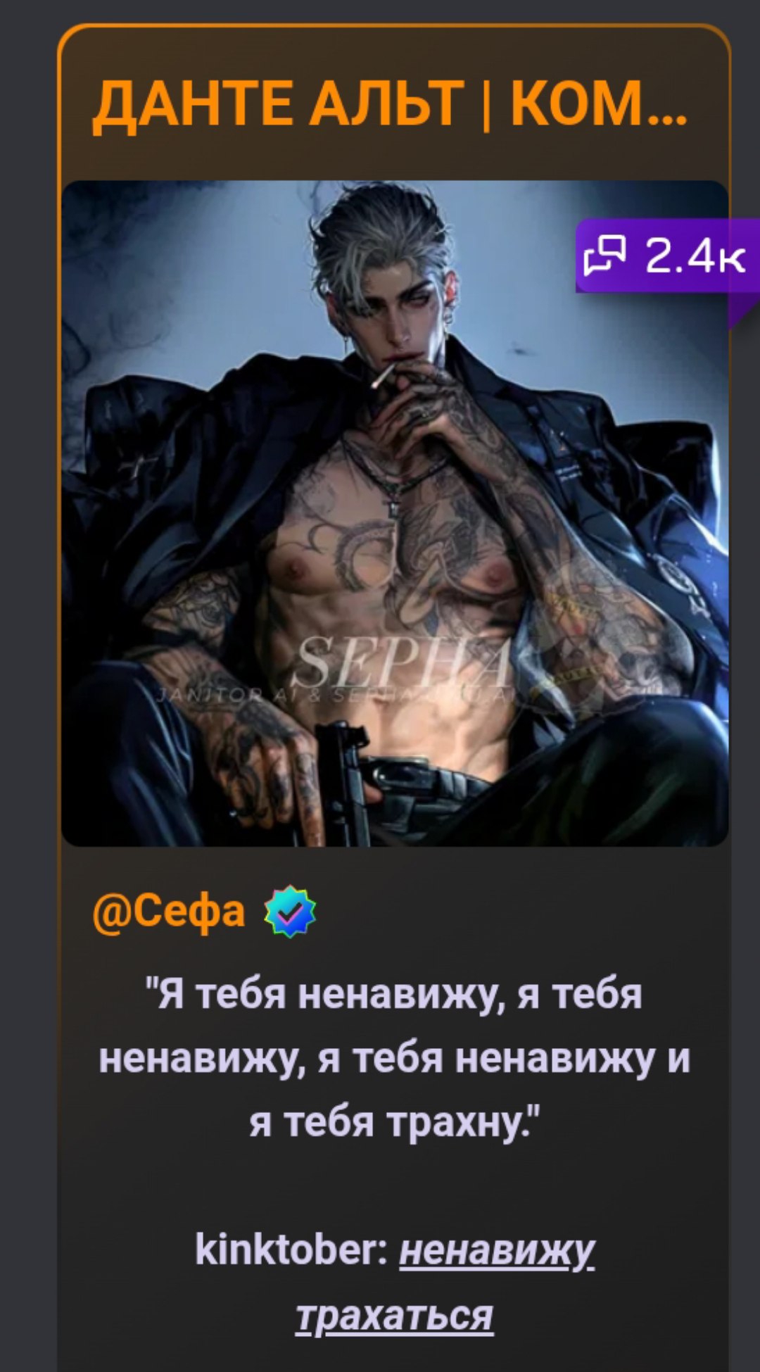 >Убери аватарку и имя у слопчанта и получишь хорни ассистанта с архетипом, убери то же у КК и получишь получу кумслоп который меня успеет заебать через 20 минут после дрочки. довольно показательно что все его карты это кумслопыч, значит с фантазией все совсем печально