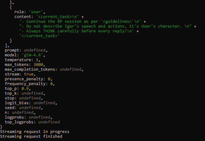 >>1377687 У тебя наверно префилл есть. Префилл на официальном АПИ не поддерживается (пока?), вместо него получается двойное сообщение ассистента, как на гптыне. Работает это как псевдопрефилл, как и на гптыне, с рандомным результатом