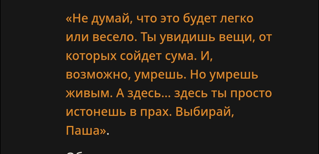 И этот вопрос, повисающий в воздухе... это единственный вопрос, который имеет значение. Какие новые горизонты мы откроем для себя, обретя это понимание?