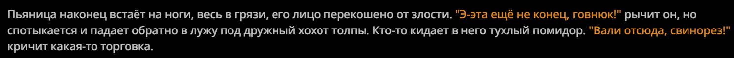>>1379520 >пресеты раньше: скачал, закинул в таверну, играешь >пресеты сейчас: открой рентри, прочитай 10 страниц мелкого текста о том как скачать и куда закинуть, скачай, закинь, перечитай снова потому что не туда закинул, прочитай ещё 10 страниц где автор пресета жалуется на жизнь и мелкий хуй, потом полчаса настраивай его хуйню, сверяясь с рентри, потом наконец-то обнаруживаешь что ключ слох пока ты с этим говном возился, можешь выть и в тапки пресетеру срать