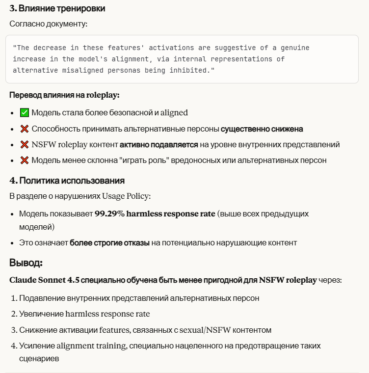 Не понимаю, чего соннет 4.5 иногда такие перлы выдает, или это клод в целом. В режиме фанфика генерирую, и перс (ну прописанный в моей персоне), которому написано что 19, прям жёстко так реагирует на поползновения девушки которой 18, прям чуть ли не педафылия. Это соевость Клода?