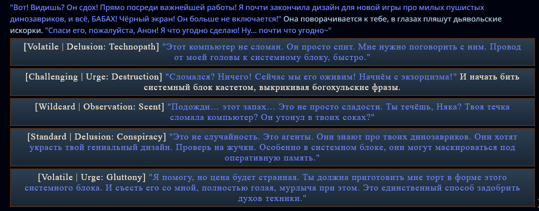 В пресете ещё куча режимов повествования, лиц, размеры ответов, инфоблокибоксы, статтрекеры для рпг карт? и так далее.