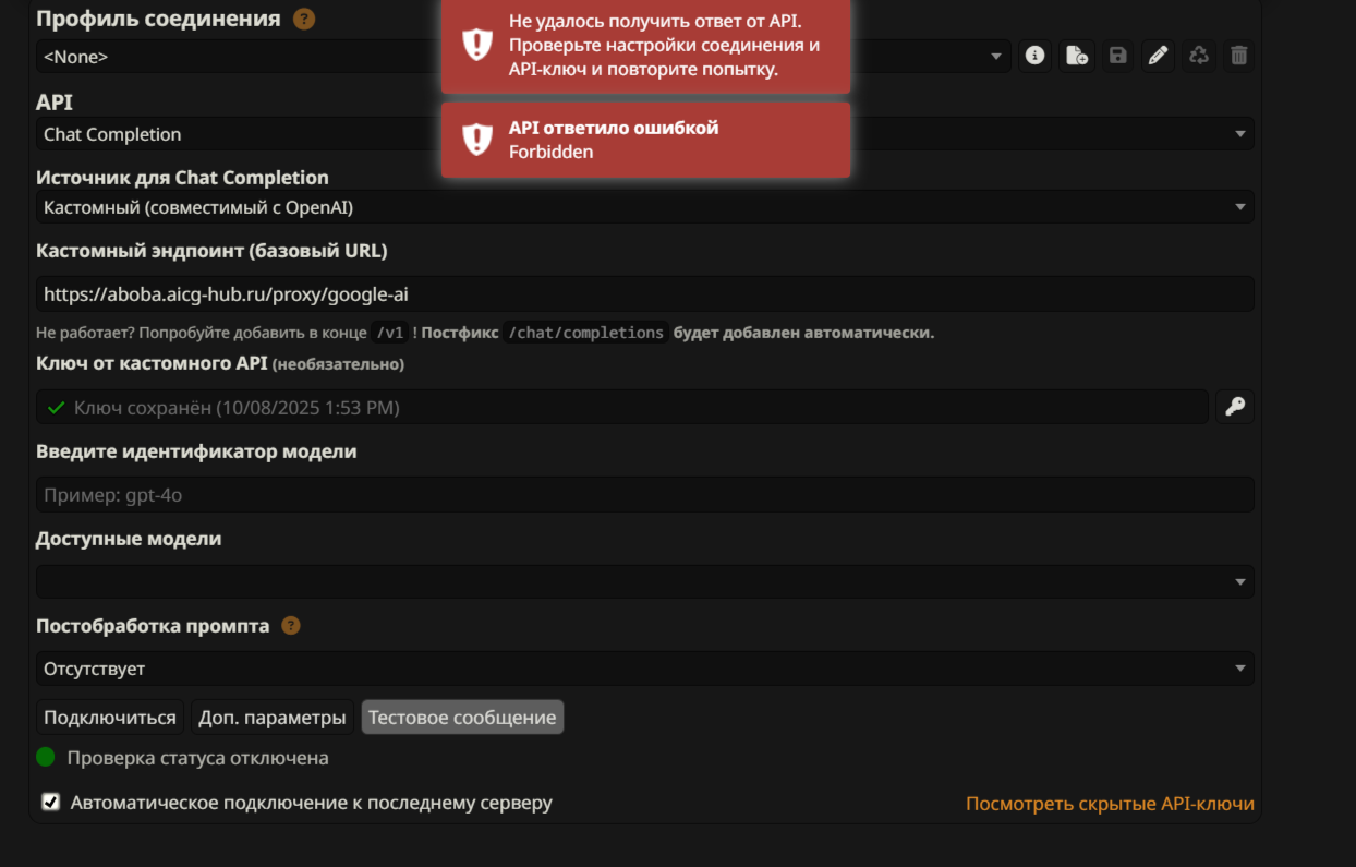 У меня на джомини при попытке юзать Гемини уже третий день выдаёт что доступных моделек нет. Если вбить название вручную, то пишет, что ключей нет, хотя по статам вроде как всё работает и народ спокойно пользуется. При этом Глм и Дипсик работают нормально. В чём подвох? Я проморгал новый гейткип после ключепокалисиса?
