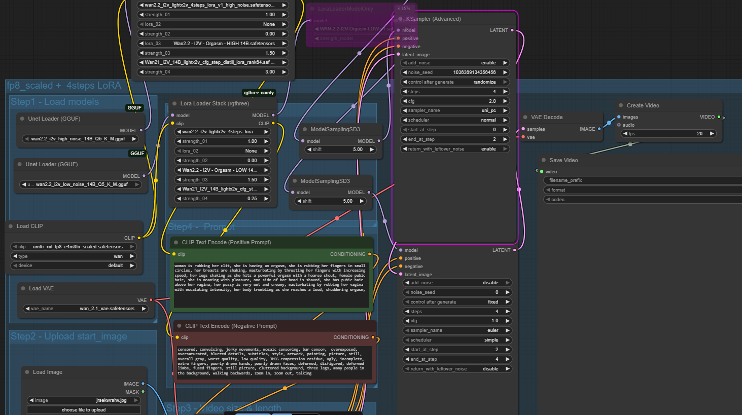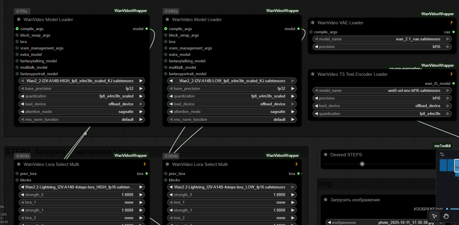 ответ на твой вопрос В хайноз wan 2.1 i2v14b cfg distill rang 64 - 1.25 + 2.2 seko v1 - 0.8 В лоунойз wan 2.1 i2v14b cfg distill rang 64 - 1.25 + wan2.2 lighting fp16 - 0.5