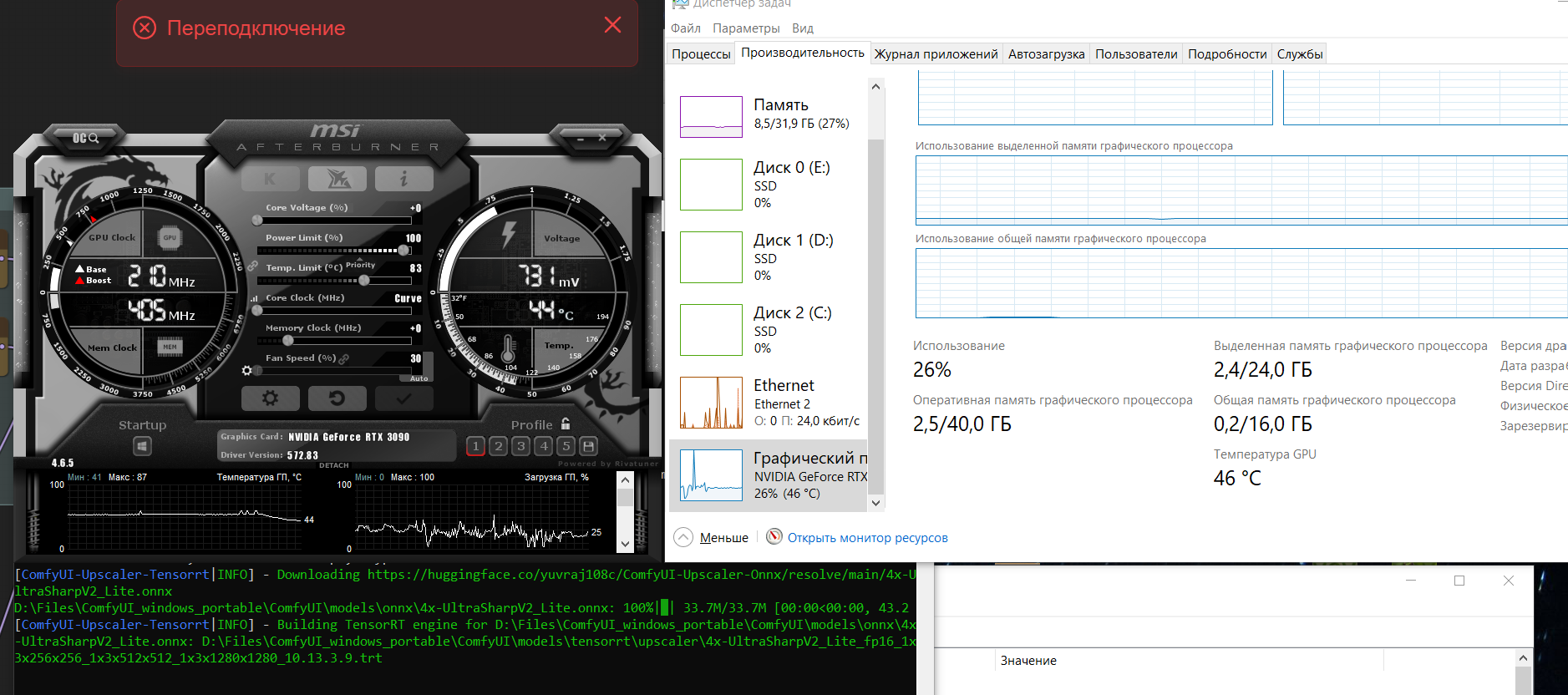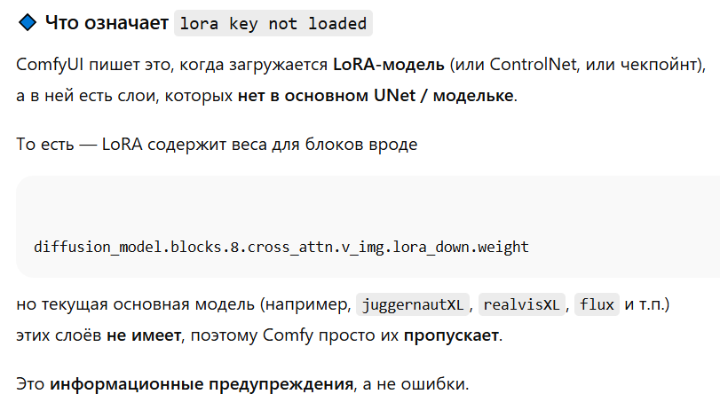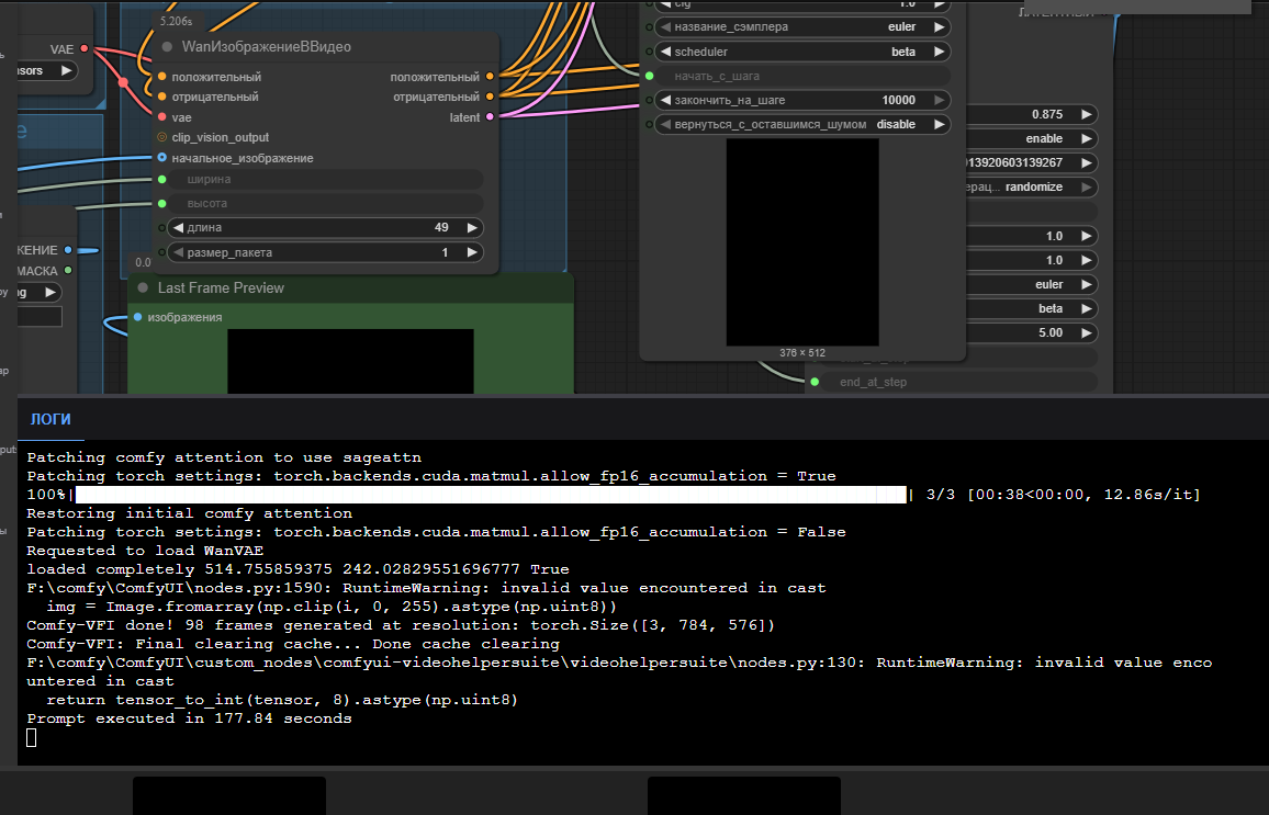 >если да то чет с комфи посмотри что творится в смд Да, там из всего лога про ошибку только в начале, дальше всё "саксесфул", "лаунчед" и так далее. Скармливал чатугпт уже, говорил откатить версию комфи, перекачать video-helper-suite и т.д. Всё это делал, через менеджер откатил с 0.6.34 до 0.6.32 через менеджер, хелперсьют удалял и переустанавливал, в том числе форки с самыми свежими обновами двухдневной давности - одна хуйня. Может дело в том что у меня портабл комфи? Ох и страшно ставить обычный, хотя с другой стороны вроде и ничего страшного должно быть.