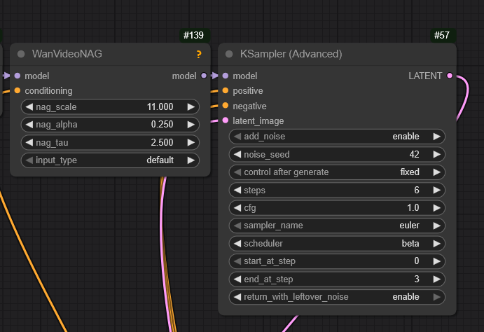 >Еще вопрос, как подобрать настройки для 2 разных воркфлоу i2v: "чернового" - для макс скорости генерации и "чистового" - для максимального качества? Никак. Изменишь настройку генерации - поменяется результат. Максимум - отключать апскейл и интерполяцию. А саму генерацию менять бессмысленно на такой случай.