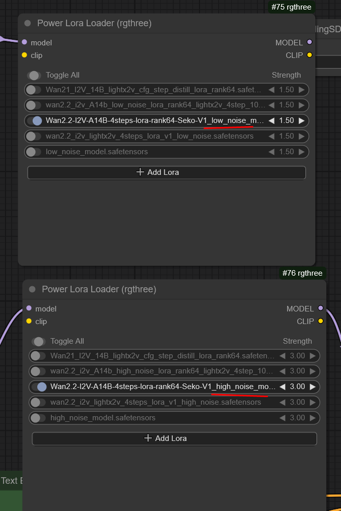 >>1402259 для старых лор которые под ван 2.1 надо повышать силу как в гайде хай на 3 лоу на 1.5, новые лоры которые для ван 22 и имеют хай и лоу надо ставить силу 1. это как база, дополнительно можно играться со значениями, но не сильно в диапазоне 10-30%. Слоумошен от промпта/сида/дополнительных лор еще зависит тут надо подбирать силу.