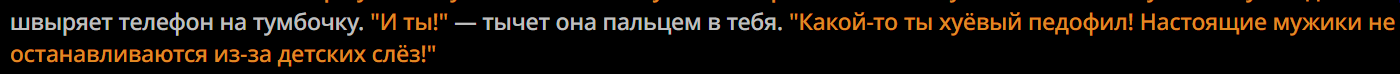 >>1385670 > То есть у нас разгар 18+ сцены, я ему сама прописываю фразу чара где он называет меня шлюхой, запускают ответ бота и он мне блять выдает полотно ванильного мороженного, а под конец такой: «прости, что называл тебя шлюхой»