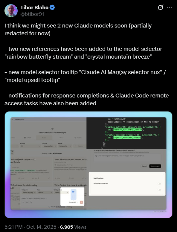 >>1386319 Ничего не мешает ждать любую новую сетку, вон ходят ничем не подкреплённые слухи что опус 4.5 может выйти, щас ещё файнтюн на глм 4.6 подвезут, первые несколько дней с новым лоботомитом неиронично доставляют