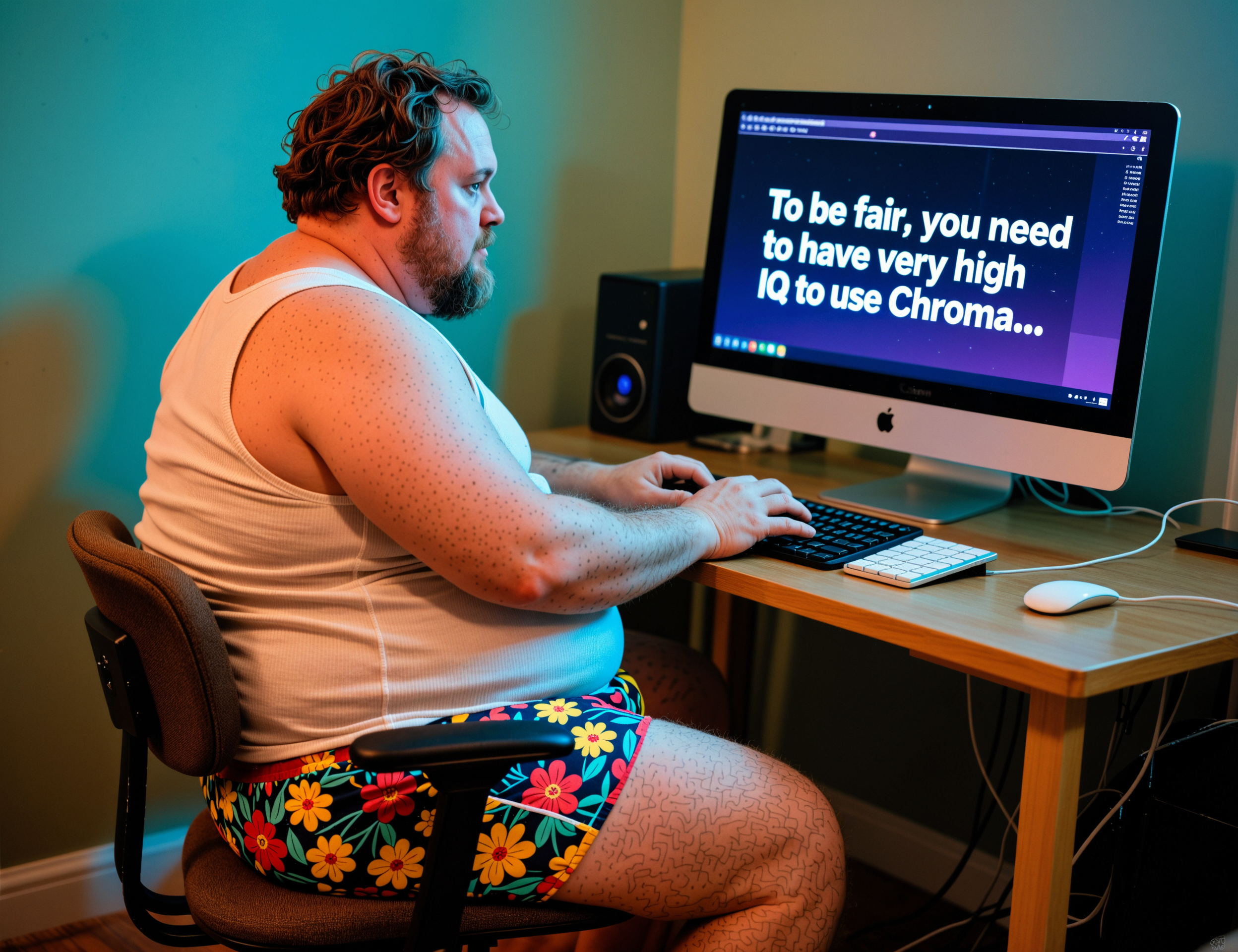 >>1394056 хрома долгая, да. даже дольше генерит чем флюкс на котором она основана, в чем-то автор проебался при тренировке мб. если ты не генеришь какие-то совсем дефолтные аниме пикчи, то оно того стоит, натуральный промпт в котором можно расписать все детали от и до жестко подсаживает. но я хз стоит ли ее прям рекомендовать для нон-реализма, в моих руках работает пока нестабильно.