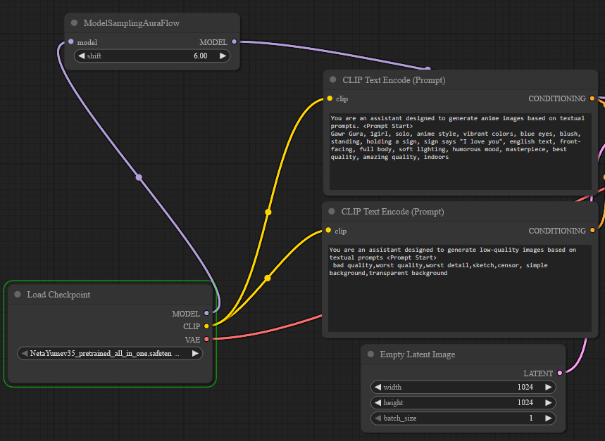 Господа, помогите. Решил попробовать NetaYumev35_pretrained_all_in_one. Использую пример воркфлоу от разработчика, комфи ни на что не жалуется. Но при попытка генерации только это: [ComfyUI-Manager] All startup tasks have been completed. got prompt model weight dtype torch.bfloat16, manual cast: None model_type FLOW Using pytorch attention in VAE Using pytorch attention in VAE VAE load device: cuda:0, offload device: cpu, dtype: torch.bfloat16