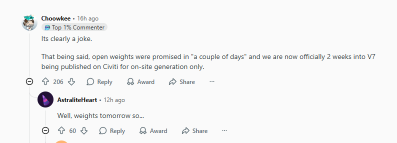 Пиздец они там ебанулись. Сначала у них вообще нихуя комфи воркфлоу не читались и они скрыли мою бабу, сидящую анусом на кактусе со здоровенным белли балджем с комментарием "докажи, что не реальное фото нахуй", которая два года там спокойно висела. Теперь тупо не дают пнг загрузить и триггеряться на жипег с одетыми взрослыми женщинами, потому что воркфлоу с доказательствами генерации нет в комплекте.