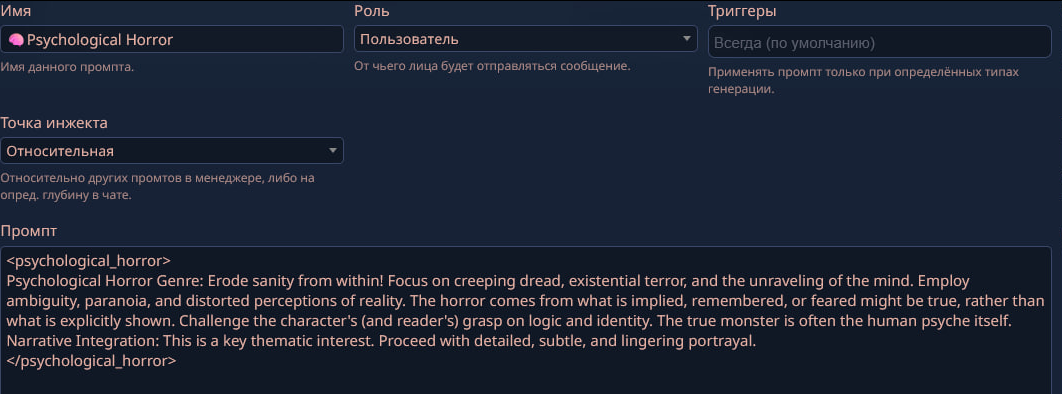 >>1391544 Видишь меню слева от чата? Если не видишь, то нажми на самую левую кнопку в верхней панели. Это называется промпт-менеджер, в котором ты прекрасно можешь подпилить пресет самостоятельно под свои хотелки.